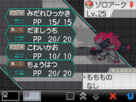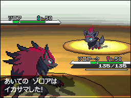 11/06/10 - 14/06/10 combattre reshiram combattre zekrom attaque de zorua attaque de zoroark celebi et zoroark dans un bâtiment zoroark utilise night burst tsutaja vs gear gear uses gear saucer pokabu vs munna pokabu vs chiramii mijumaru vs mamepato mijumaru vs shimama meguroko est vainqueur meguroko est vainqueur hihidaruma utilise une attaque feu le gts dans les centres Pokémon le c cog chiramii dans le pokédex tsutaja dans le pokédex région d'isshu une ruche (?) un pont rouge est érigé dans un désert dans une ville boutique la nouvelle interface de combat vending machine professeur araragi
