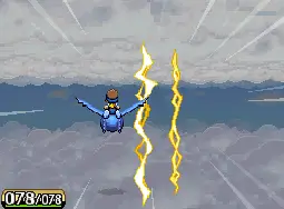 De plus, ils permettent de remplacer Pichu lors des combats, car vous n'avez évidemment pas accès aux Pokémon terrestres. Les deux Pokémon légendaires ont aussi l'avantage de pouvoir être appelé à tout instant via leur Glyphe. Vous pouvez, en plus de tout ça, bénéficier d'une vitesse supersoniques en touchant l'écran tactile quelques secondes lorsque vous êtes en vol. Pratique, quand on est pressé.