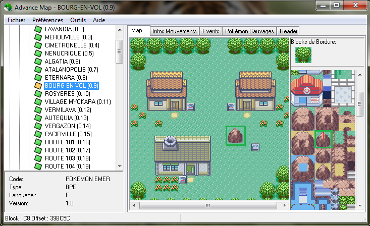 J'ouvre Bourg-en-Vol, de Pokémon Émeraude :Vous avez sûrement remarqué, sur la droite, ce qu'on appelle un "tileset".