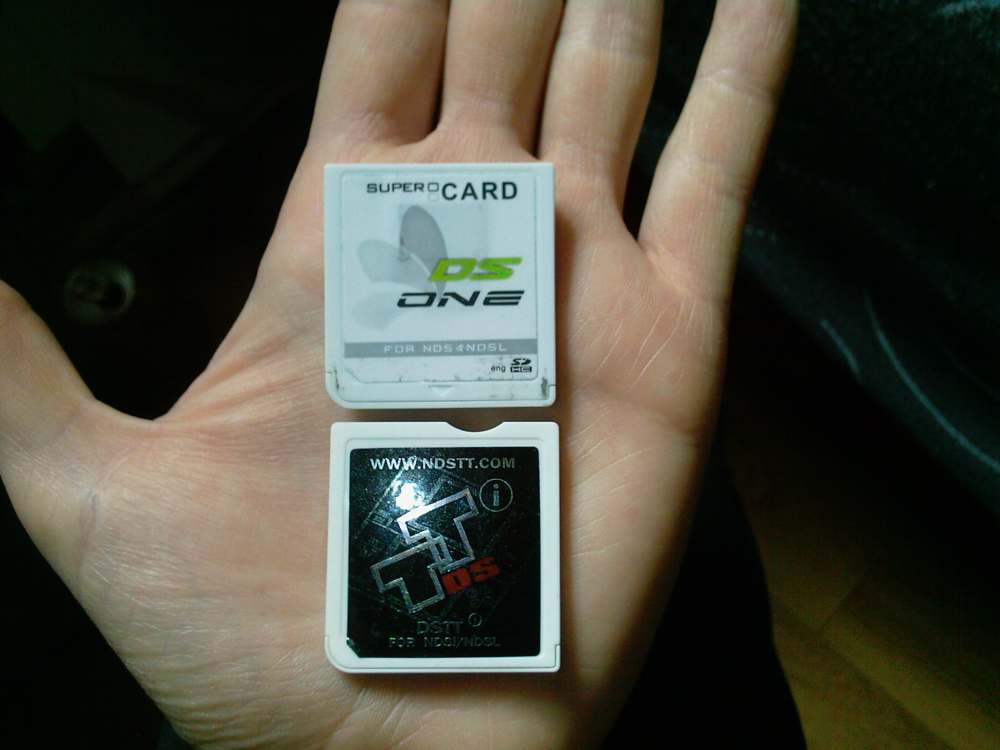 Celui du haut est un "Supercard ds One version 3", qui fonctionne avec les Nintendo DS normales et lite. Celui du bas est un Dstti, qui lui peut fonctionner sur une Nintendo DSi.