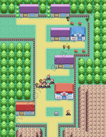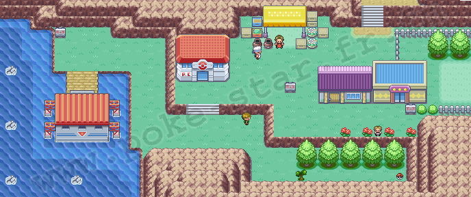 PLAN : Village Vous voici sur l'une des îles principale de l'archipel. On vous emmène directement vers le CENTRE POKÉMON (le plus grand du jeu), où se trouve la machine qui permet de transférer les POKÉMON de HOENN. On vous donnera notamment une sorte de MÉTÉORITE, et un TICKET pour voyager à travers les ÎLES 1, 2 et 3.