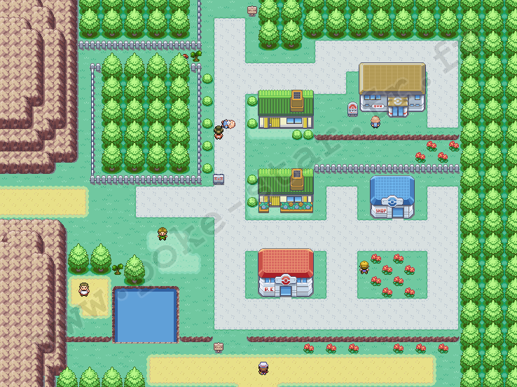 Soignez vos POKÉMON. Au premier étage de ce CENTRE, une dame vous donnera de nouvelles informations sur les transferts de POKÉMON. Vous ne pourrez pas utiliser le PC. Bref, vous pouvez visiter ce minuscule village, mais rien à faire d'autre. Quittez le village en surfant à droite. Sur cette rive, vous pouvez combattre un DRESSEUR. Peu après sur terre, dirigez-vous toujours vers le Nord, défiez les quelques TOPDRESSEURS.